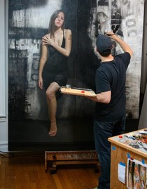 David Jon Kassan (born 1977 in Little Rock, Arkansas) is a contemporary American painter best known for his life-size realist portraits. The paintings combine figurative subjects with abstract backgrounds or “tromp l’oeil texture studies,” reportedly inspired by Franz Kline and Robert Rauschenberg. Of this dual representation strategy Kassan notes, “my effort to constantly learn to document reality with a naturalistic, representational painting technique allows for pieces to be inherent contradictions; paintings that are both real and abstract.